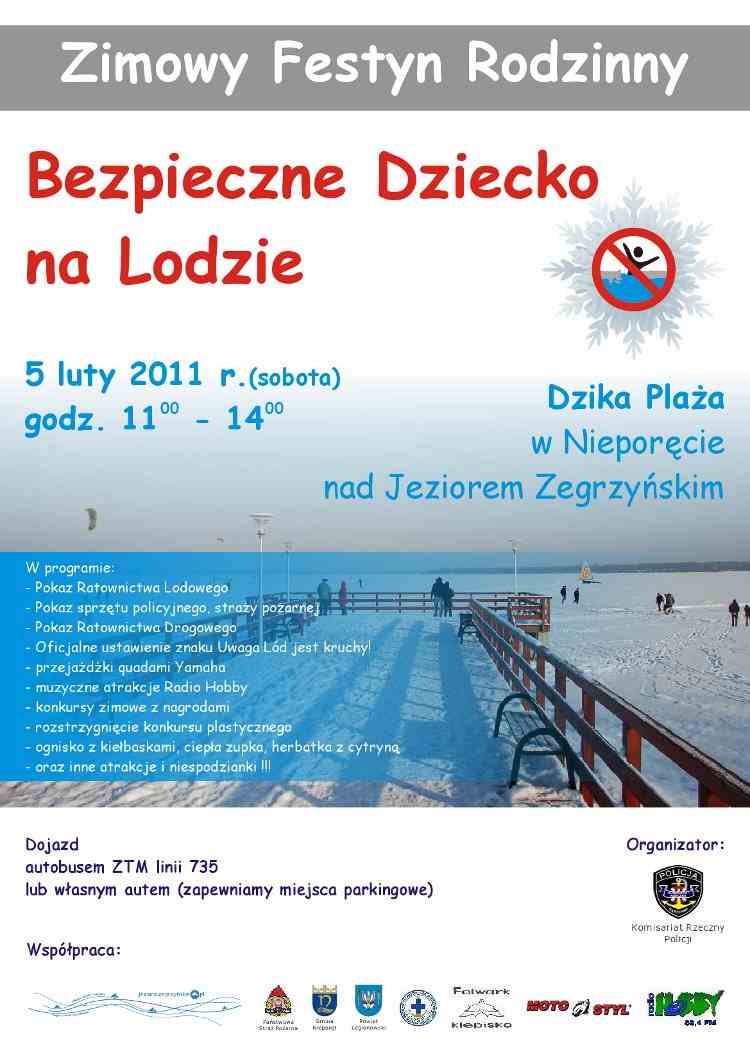 Pokaz ratownictwa lodowego, pokaz sprzętu policyjnego i straży pożarnej, pokaz ratownictwa drogowego oraz wiele innych atrakcji czeka na uczestników zimowego festynu rodzinnego "Bezpieczne Dziecko na Lodzie".