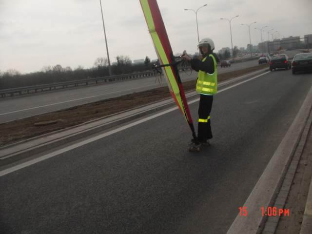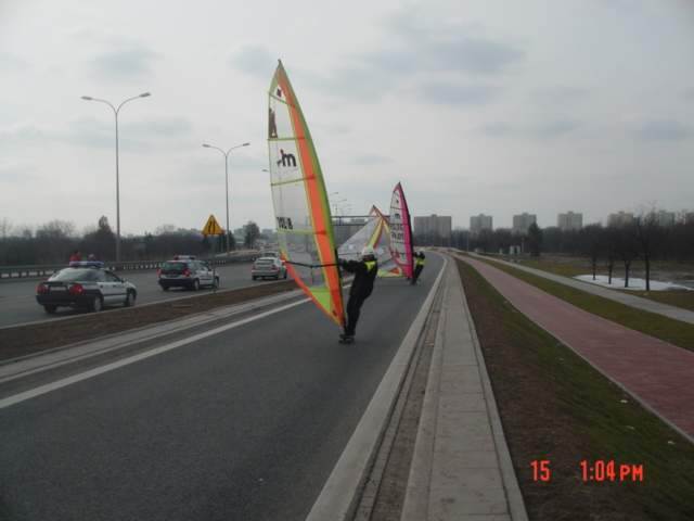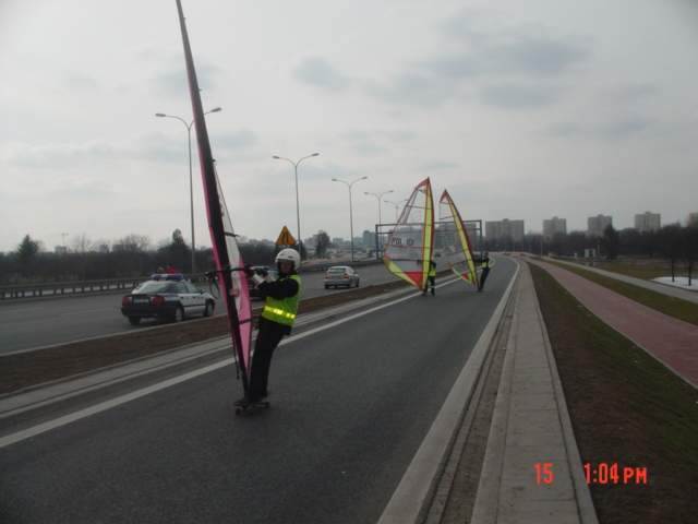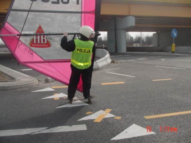 Wyszkoleni przez nas (trenera Nerlinga) policjanci w każdej chwili mogą zastąpić radiowozy na deskorolkami z żaglem.