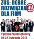 Od 18 do 22 listopada Zakład Ubezpieczeń Społecznych zaprasza na Tydzień Przedsiębiorcy. W tych dniach placówki I Oddziału ZUS w Warszawie przyjmować będą dłużej, oczekując na przedsiębiorców chcących skorzystać z porad ekspertów.