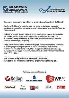 Jest to cykl bezpłatnych wykładów poświęconych inwestowaniu na GPW.