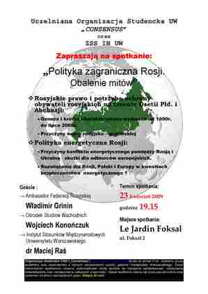 Zaprasza Uczelniana Organizacja Studencka Uniwersytetu Warszawskiego "CONSENSUS" oraz ZSS IH UW