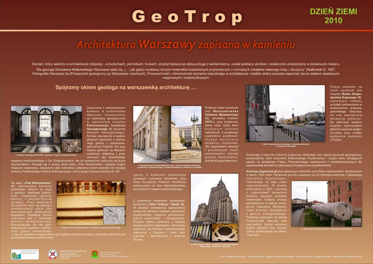 Zapoznanie z zastosowaniem kamienia w budownictwie Warszawy rozpoczniemy od obserwacji geologicznych w najstarszym budynku Państwowego Instytutu Geologicznego (budynek Muzeum Geologicznego, wejście od ul. Wiśniowej).