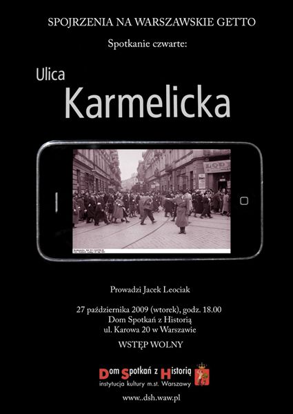 Dom Spotkań z Historią (ul. Karowa 20 w Warszawie) zaprasza na spotkanie p.t. Ulica Karmelicka w cyklu "Spojrzenia na warszawskie getto".