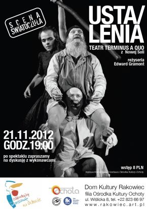 "USTA/LENIA" to autorski spektakl Edwarda Gramonta, lidera i założyciela Teatru "TERMINUS A QUO", w którym autor demaskuje obyczajowość polską poprzez sięgnięcie do legendy o Robin Hoodzie.