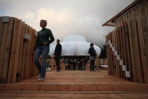 UFO, gdzie odbędzie się dyktando, to instalacja przypominająca statek kosmiczny, która wylądowała na warszawskim Placu Na Rozdrożu - w miejscu okrągłego placu z fontanną. Można tu odpocząć mocząc nogi w basenie, napić się drinka, przysiąść na leżaku.