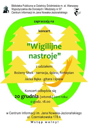 Koncert odbędzie się 20 grudnia (wtorek) 2011 roku o godz. 18:00 w Centrum Informacji im. Jana Nowaka-Jeziorańskiego ul. Czerniakowska 178a