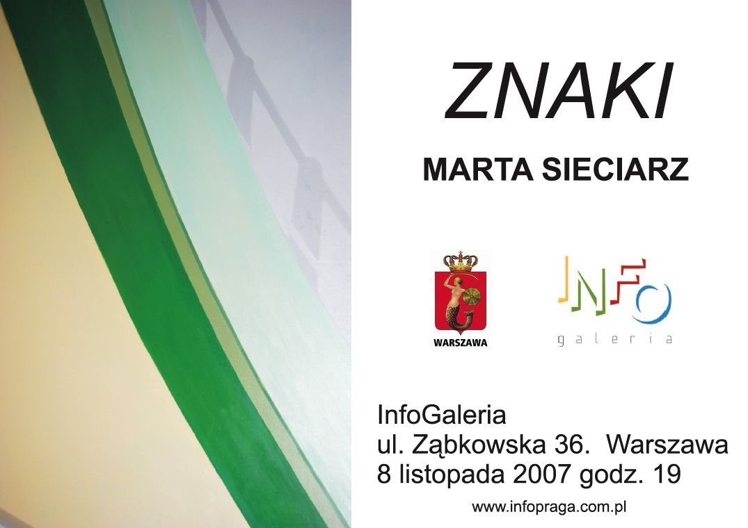 Zapraszamy na wernisaż wystawy "Znaki" Marty Sieciarz, który odbędzie się w najbliższy czwartek 8 listopada o godz. 19.00 w InfoGalerii ul. Ząbkowska 36.