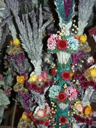 Najbardziej w Polsce popularne palmy zrobione są z gałązek wierzbowych ze srebrzystymi puszystymi baziami oraz zielonymi gałązkami tui, bukszpanu, borówek leśnych i kolorowanymi suchymi kwiatkami i kłosami zbóż. Natomiast palmy wileńskie, występujące niegdyś w okolicach Wilna oraz na przygranicznych terenach polsko-litewskich, mają kształt wysmukłych bukietów lub barwnych pałek, zwanych wałkami, różnej wysokości i grubości, z misternie układanych suszonych kwiatków, farbowanych kłosków różnych traw, zbóż i mchów. Są różnorodne w kształcie i kolorystyce. Zobaczcie Państwo sami.