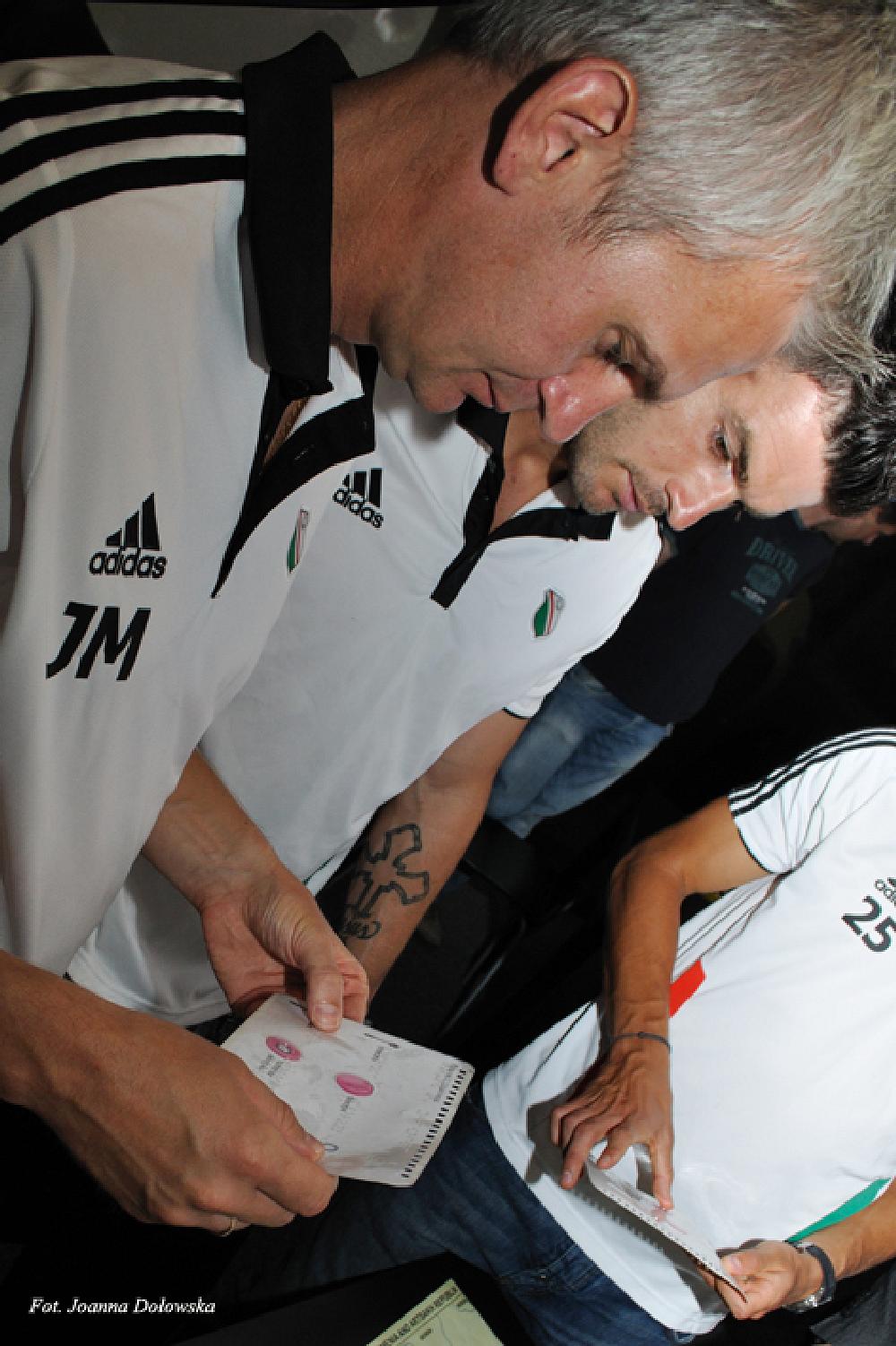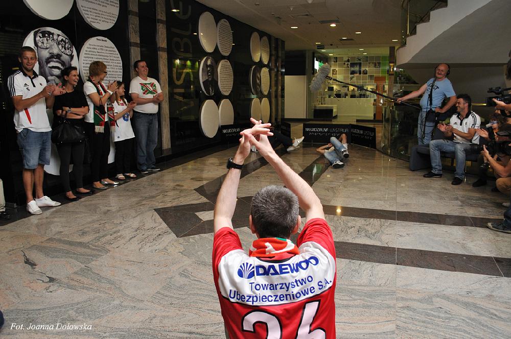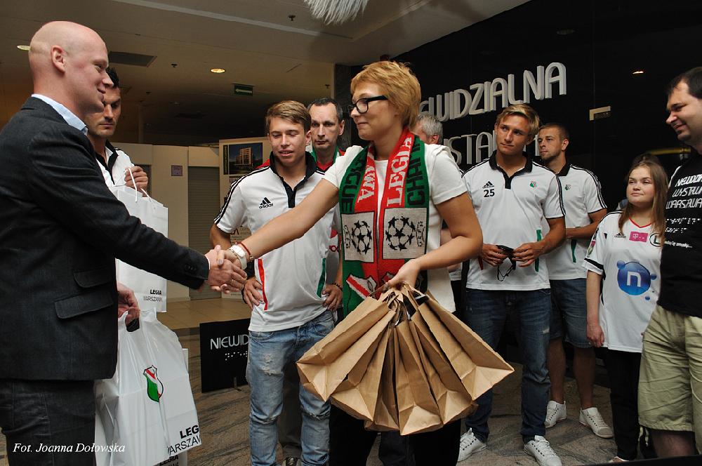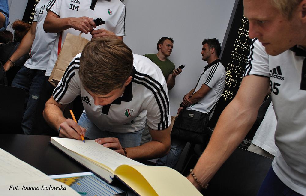 W poniedziałek 16.07.2012r miałam przyjemność uczestniczyć w spotkani kibiców Legii Warszawa z piłkarzami tegoż Klubu. Piłkarze byli lekko onieśmieleni gdy przywitano ich z pieśnią na ustach (m.in. małego Gabrysia, który wołał cicho „Miś, Miś Legia Miś…”) zaś niewidomi przewodnicy, pracujący w Niewidzialnej Wystawie, ubrani byli w koszulki i szaliki w barwach klubowych (Tomek- w koszulce Radosława Wróblewskiego sprzed wielu lat, Kasia- w koszulce Janka Gola z zeszłego sezonu, a szefowa wystawy Gosia- w szaliku Legia Champions League sprzed prawie 20lat).