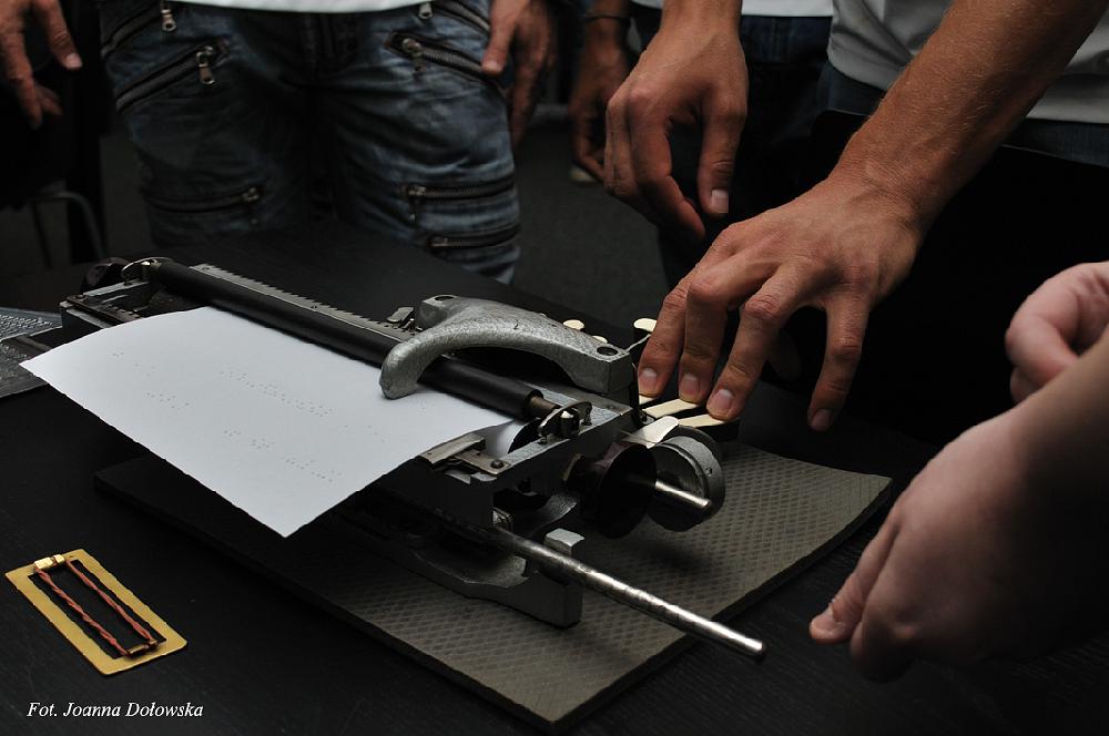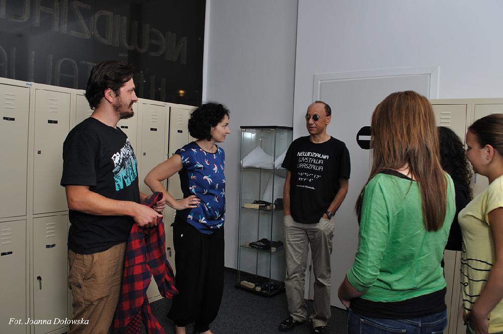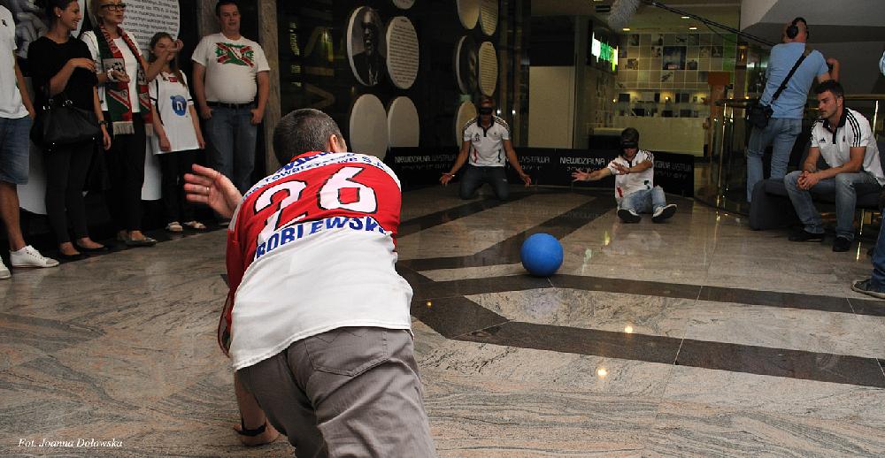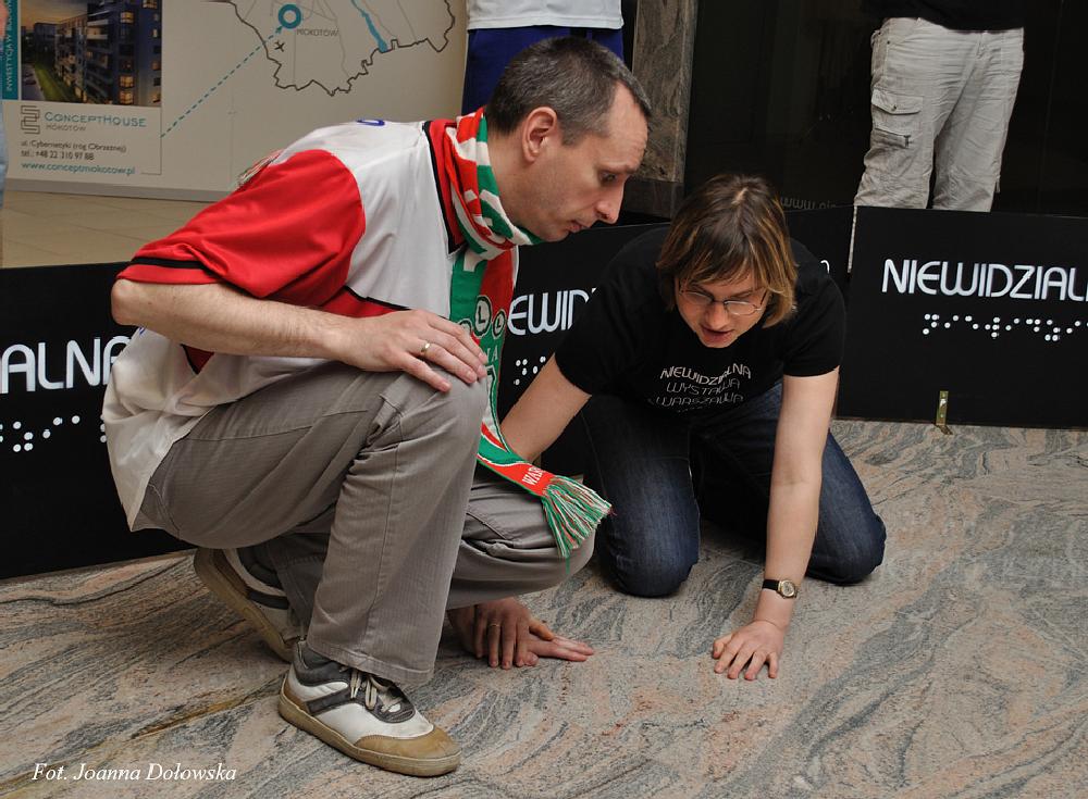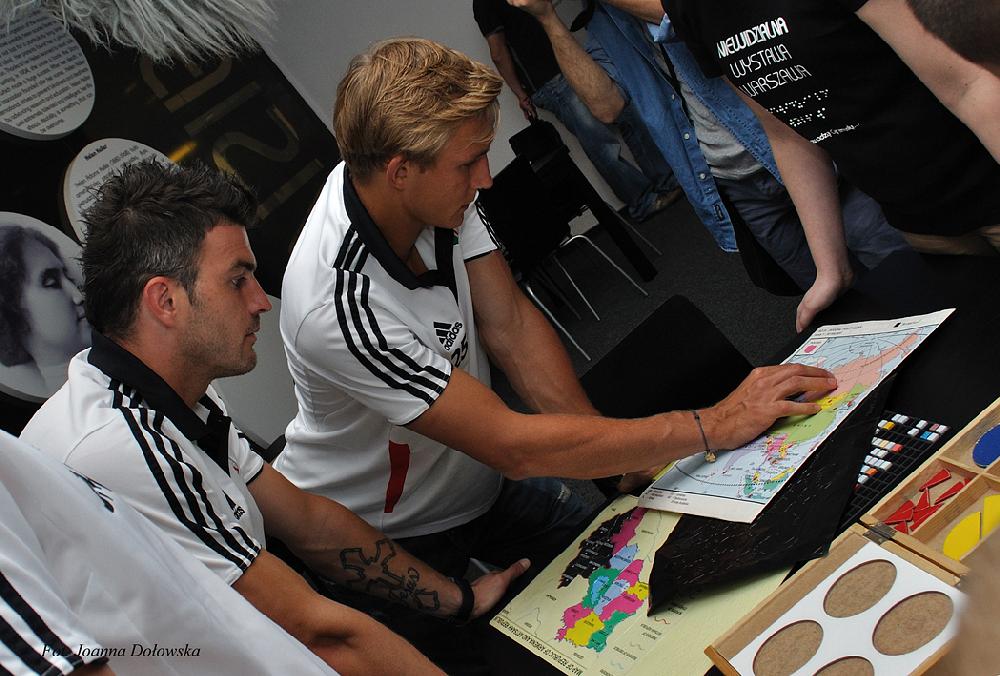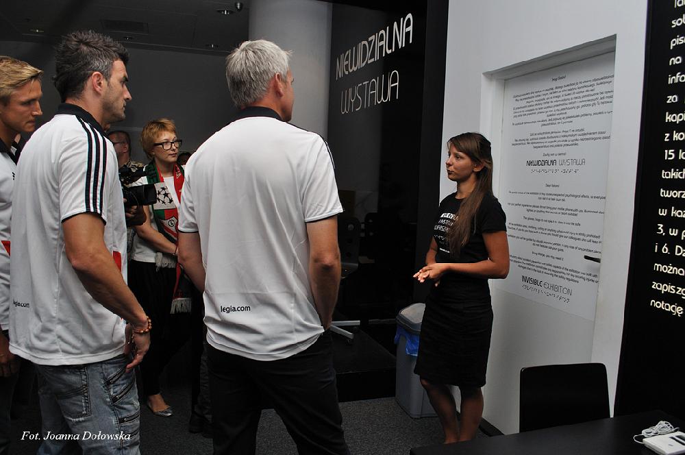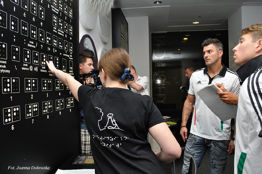 Po krótkim powitaniu goście: Michał Żewłakow, Jakub Rzeźniczak, Janusz Gol, Daniel Łukasik, Jakub Kosecki oraz trener Jacek Magiera rozpoczęli zwiedzanie wystawy. Piłkarze z przyjemnością wchodzili w świat swoich niewidomych fanów - uczyli posługiwać się maszyną do pisania Braillem oraz poznali trudniejszą technikę pisania Braillem- ręczną. Później było już coraz weselej układanie puzzli z zasłoniętymi oczami czy mini mecz w goalball – piłką dla osób niewidomych w której znajduje się dzwoneczek ułatwiający zlokalizowanie piłki. Goście przed mini meczem poznali tajemnicze pomieszczenie zwane niewidzialnym. Tajemniczy pokój wprowadził wszystkich uczestników w jeszcze lepszy nastrój, ciekawa jestem co tam się działo?