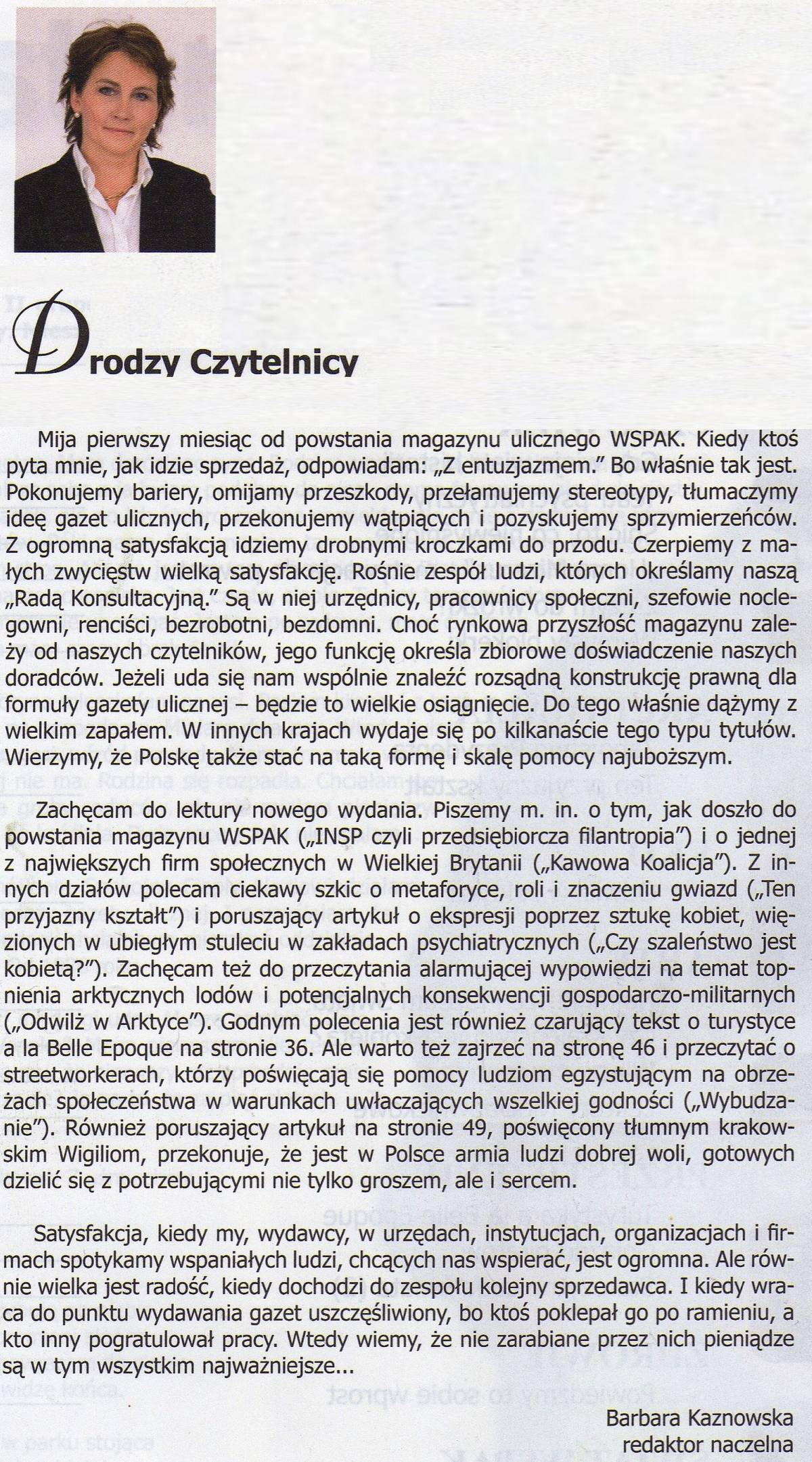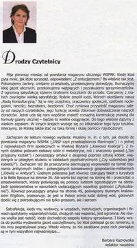 Jak pisze w drugim numerze Barbara Kaznowska, Redaktor Naczelna: