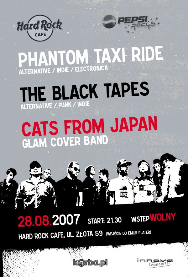 Glam rockowe wcielenie działającego już od kilku lat warszawskiego zespołu ELVIS DELUXE, którego korzenie sięgają jeszcze sceny hard core punk z początku lat 90 tych. ELVIS DELUXE znany z wielu koncertów prezentuje surowe oblicze współczesnego rocka i określa swoją muzykę jako stoner rock. CATS FROM JAPAN z wokalnym udziałem Dj'a Roku wykonują wiekopomne covery z repertuaru takich tuzów jak Sweet, Dawid Bowie, T. Rex, New York Dolls, Gary Glitter, Alice Cooper, Iggy Pop. Oprócz wspaniałej rockowej muzyki po CATS FROM JAPAN można spodziewać się też wybujałego image'u typowego dla wykonawców tamtych czasów.