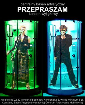 Niecka CENTRALNEGO BASENU ARTYSTYCZNEGO (dawnego Centrum Artystycznego Montownia) posłuży tego dnia za parkiet, a atmosfera będzie w tę noc równie niezwykła, jak niezwykła jest muzyka PRZEPRASZAM. Glamrockowa, żywa, poetycka, rubaszna i - chciałoby się powiedzieć gdyby nie negatywne konotacje - przaśna. Taką muzykę mógłby tworzyć Maleńczuk, gdyby dołączył do Pogodno. Albo Michał Wiśniewski, gdyby tylko potrafił. Niezwykły kontakt z publicznością, żywa, pełna energii muzyka, naturalny image sceniczny, to wszystko czyni z PRZEPRASZAM niebanalny zespół o wielkim potencjale.
