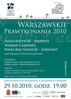 Dla wielbicieli talentu Jacquesa Loussiera, muzyki klasycznej i jazzu orkiestra Warsaw Camerata oraz Fundacja Nowa Orkiestra Kameralna przygotowały wspaniałą niespodziankę - koncert Warszawskie Prawykonania [29.10.2010 r.].