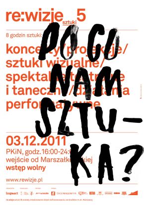 re:wizje sztuki 5 to jeden intensywny dzień i kilkanaście projektów artystycznych tworzonych poza publicznymi instytucjami lub bez stałego źródła finansowania W tym roku prezentujemy nie tylko dzieła powstałe w Warszawie, ale także projekty z innych miejsc Polski i z zagranicy, a więc takie, których warszawska publiczność nie miała okazji zobaczyć.