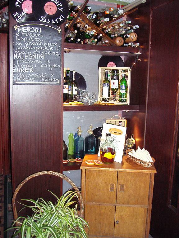 Na dole, przy wejściu jest obowiązkowa szatnia, trzeba poczekać na windę, wjechać, więc nie trafiają się amatorzy „kielicha na szybkensa” a i marudnych też nie widać.