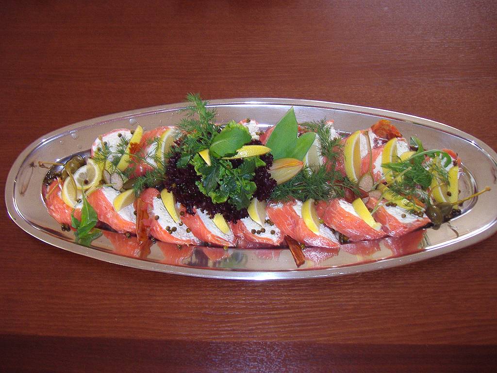 - Ser mozzarella, łosos i kapary (Salmon, capers and mozzarella cheese) - 12,00 zł.