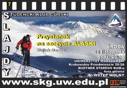 Zapraszamy również na pokazy slajdów organizowane przez zaprzyjaźnione z nami kluby górskie i turystyczne: we wtorek swoje slajdy pokazują Maluch i Tramp, w środę oprócz nas także Klub Wysokogórski, w czwartek Koło PTTK nr 1 i SKPB, a w weekendy - Jarema.