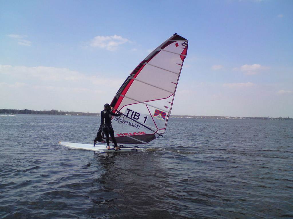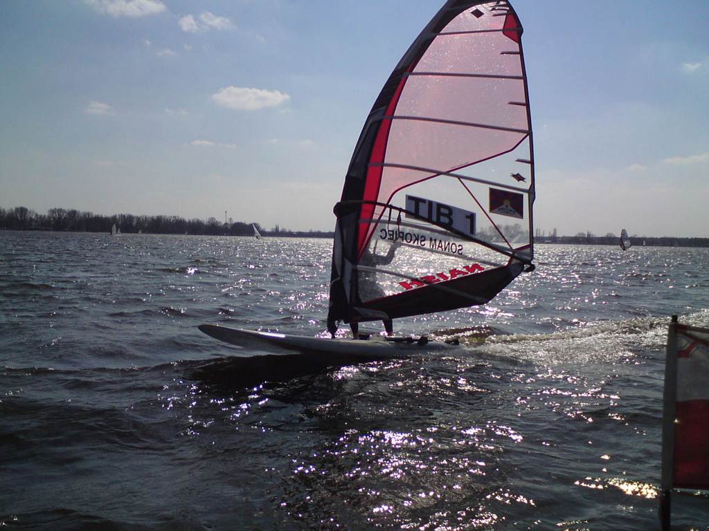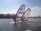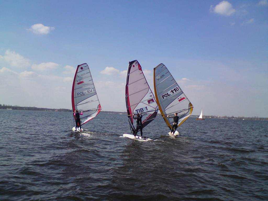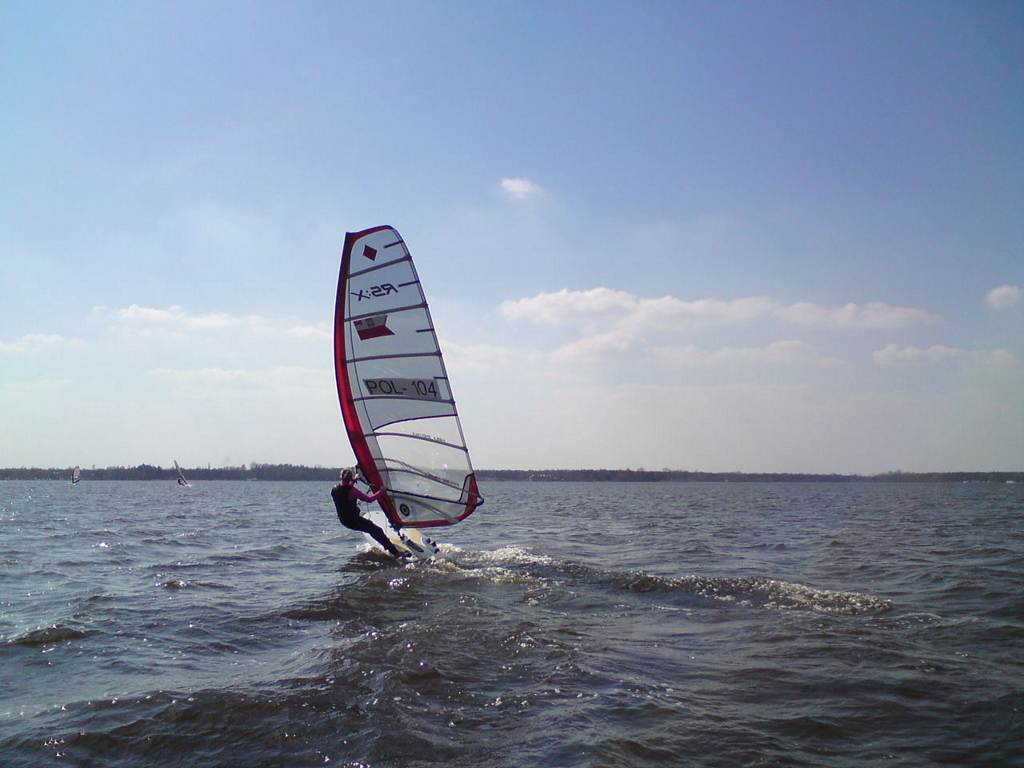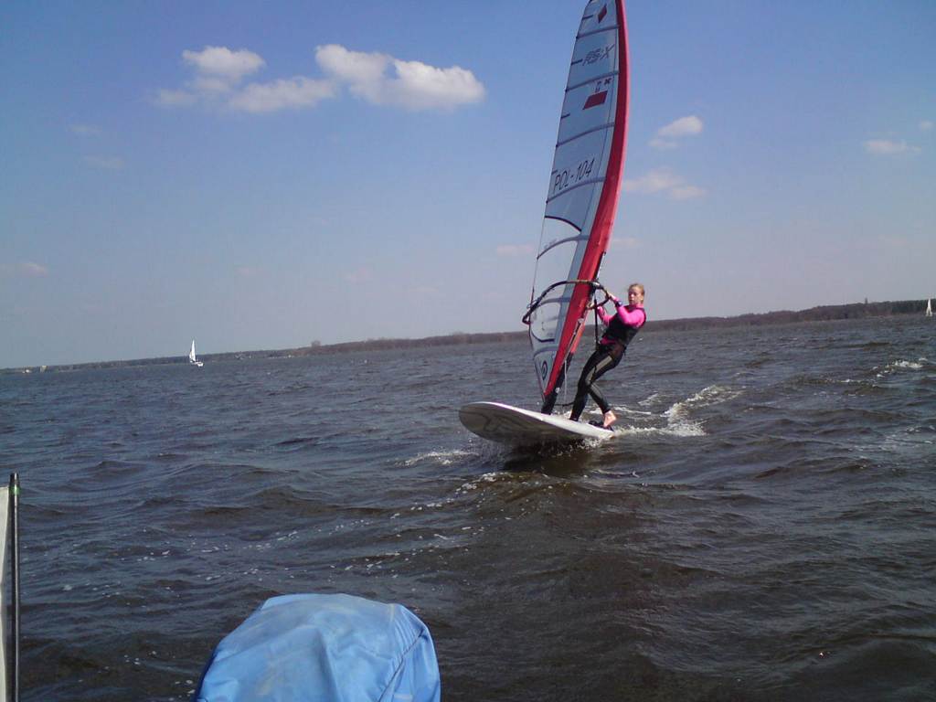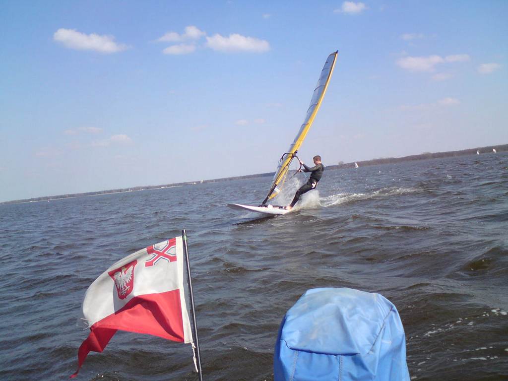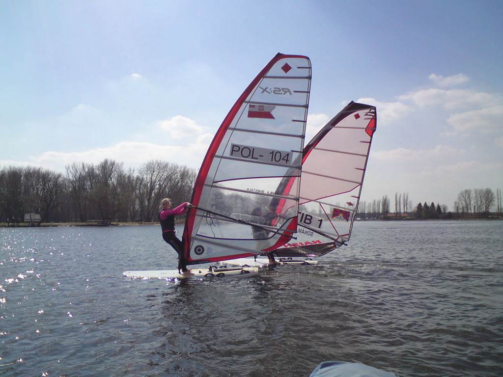Wiosna w pełni, wyszliśmy na wodę, nie tylko "deski". Inne klasy też. Dzisiaj na Zegrzu było jak w lato, biało i kolorowo od żagli.