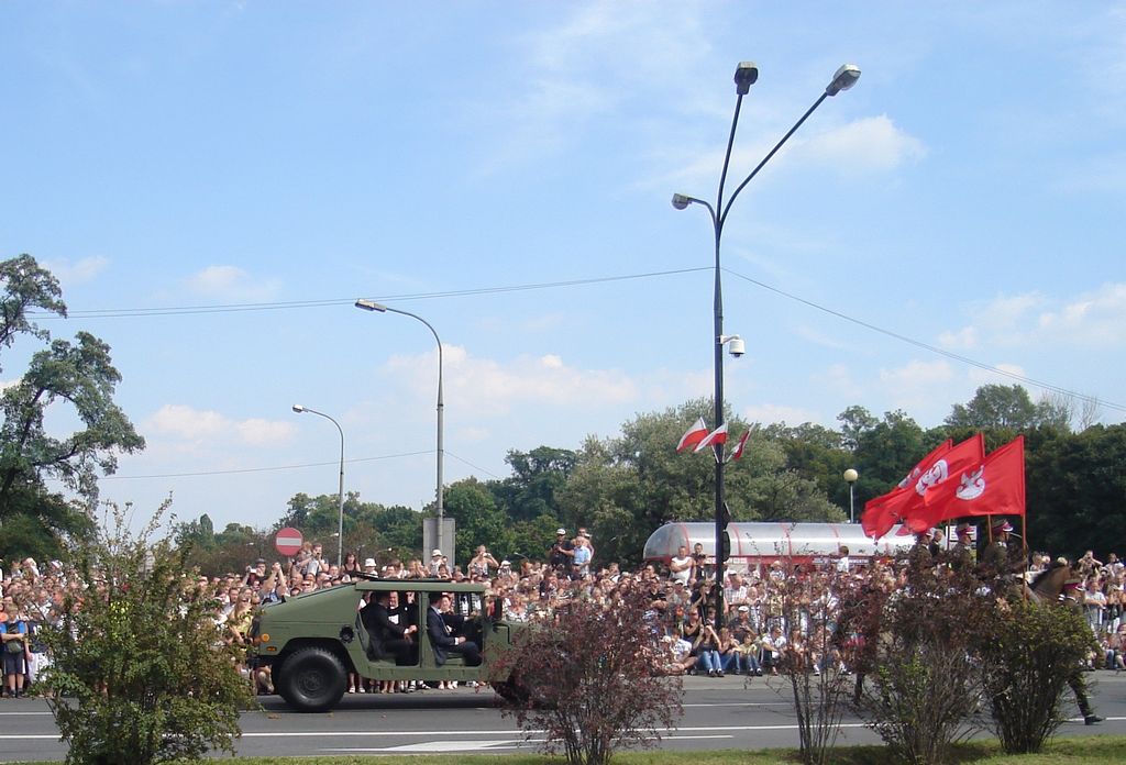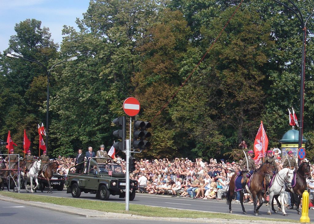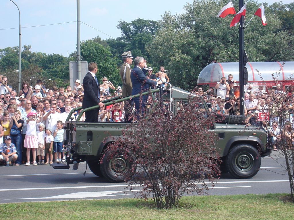 Zwierzchnik Sił Zbrojnych, Prezydent Rzeczpospolitej Polski Lech Kaczyński, ze swej kancelarii przybył pod pomnik Marszałka Józefa Piłsudskiego przy Belwederze w odkrytym samochodzie terenowym jednocześnie dokonując przeglądu sprzętu czekającego na rozpoczęcie defilady.