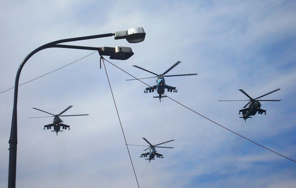 Na niebie pojawiły się szkoleniowe Iskry, myśliwce F-16, Migi-29 samoloty myśliwsko-szturmowe SU-22 a także śmigłowce bojowe Anaconda (z Marynarki Wojennej), Mi-24, MI-17, i Sokół.