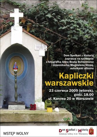 Dom Spotkań z Historią przedstawia album Anny Beaty Bohdziewicz i Magdaleny Stopy – Kapliczki warszawskie. Książka zawiera blisko 300 zdjęć wykonanych przez Annę Beatę Bohdziewicz. Najstarsze, czarno-białe fotografie powstały na początku lat 80., ostatnie w 2009 roku. Zdjęciom towarzyszą wspomnienia mieszkańców kamienic zebrane przez Magdalenę Stopę.