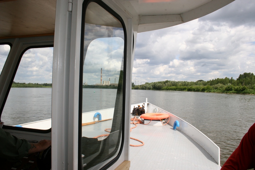 Za śluzą, gdy do żerańskiej elektrociepłowni dopłynęliśmy, oczom ukazał się krajobraz, jakby z kopalni ze składem żelastwa połączonej. Na prawo hałda węglowa u stóp niebotycznych kominów się rozpostarła, po lewej zaś – „cmentarzysko” pełne haftowanych rdzą barek i kryp, które lata świetności dawno już mają za sobą.