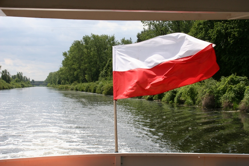 Kwadrans nie minął, jak kotwicę podnieśliśmy a już z szerokiego nurtu Wisły w jej wąską odnogę wpłynąć przyszło, gdzie rychło przed nami coś na kształt grodu warownego wyrosło. Szczęśliwie bram jego szturmować nie musieliśmy. Śluza z łoskotem rozwarła swoje podwoje, byśmy do środka wpłynąć mogli. Tam statek uwięziony pomiędzy żelaznymi wrotami wraz z wodą wzniósł się ku górze, a gdy poziom właściwy osiągnął, przegroda się rozsunęła i w dalszą drogę ruszyć mogliśmy.