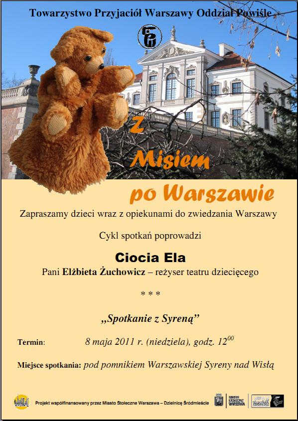 Spotkania będzie prowadziła Ciocia Ela, czyli pani Elżbieta Żuchowicz - reżyser teatru dziecięcego, a celem ich będzie pokazanie dzieciakom najpiękniejszych fragmentów stolicy i opowiedzenie związanych z nimi historii.