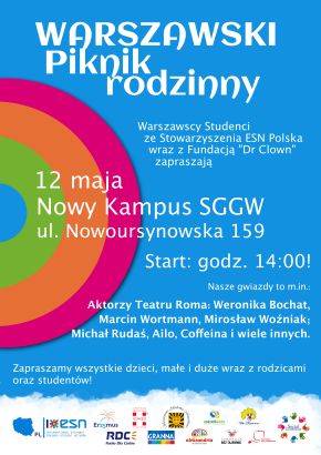 Serdecznie zapraszamy do udziału w Warszawskim Pikniku Rodzinnym, który odbędzie się 12 maja na terenie Nowego Kampusu Szkoły Głównej Gospodarstwa Wiejskiego przy ul. Nowoursynowskiej 159 w godzinach 14-22.