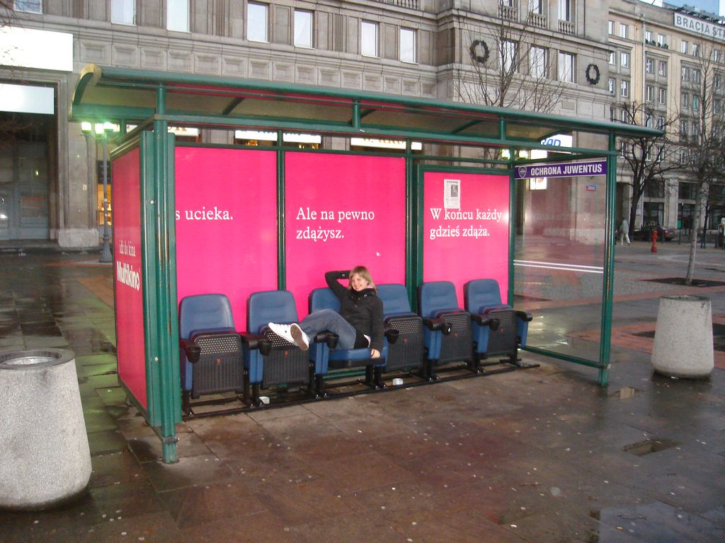 Wygodne fotele na nowej wiacie przystankowej zachęcają do odpoczynku, ale gdzie jest ekran??