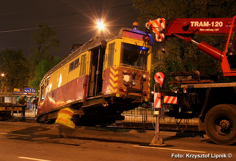 Wykolejony wóz przejechal około 40 metrów, dodatkowo lora uderzyla go w prawy bok z tyłu.