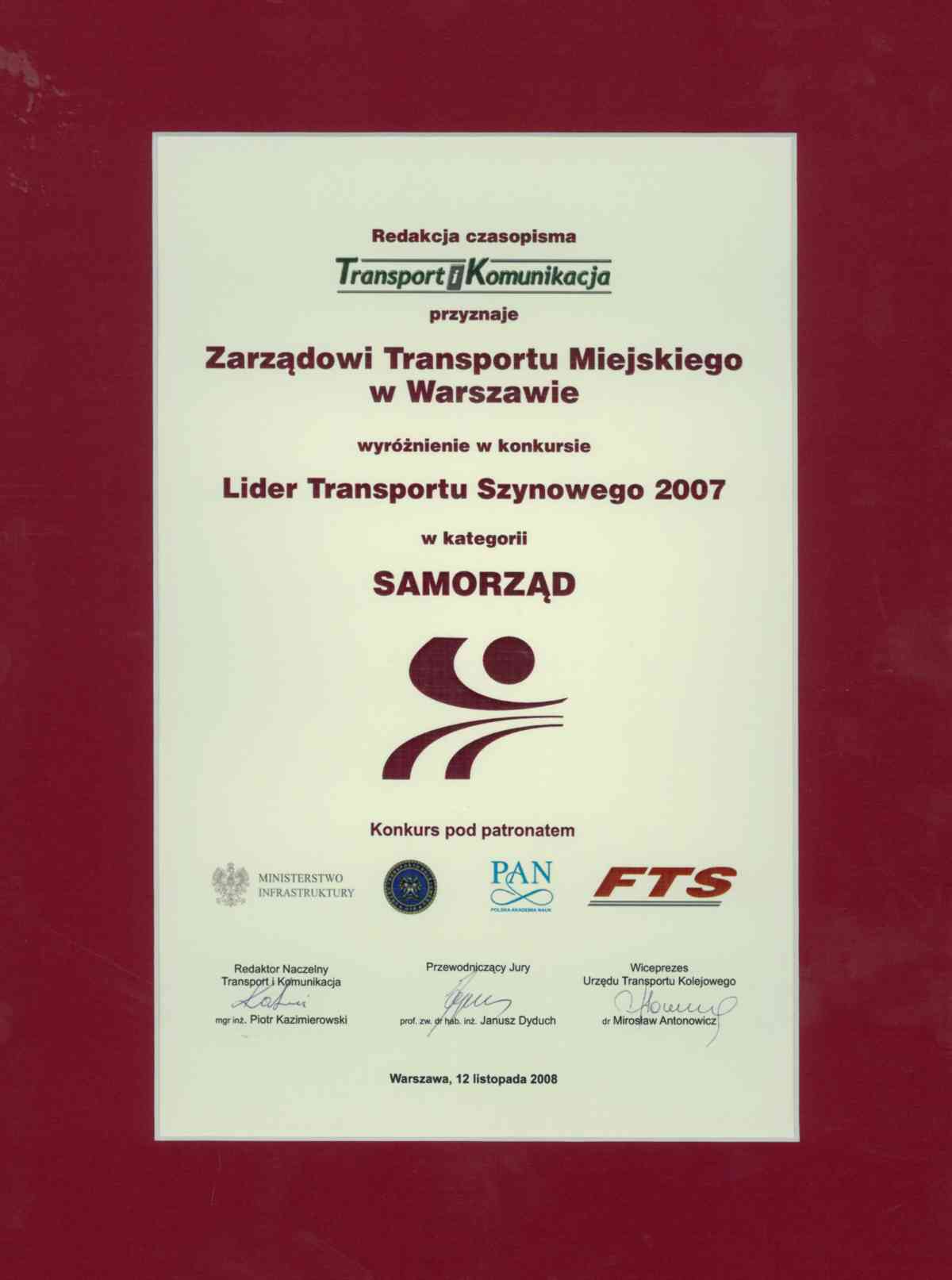 Zarząd Transportu Miejskiego został uhonorowany wyróżnieniem w konkursie