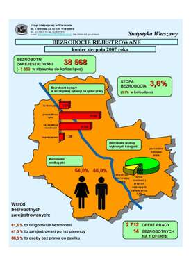 Urząd Statystyczny w Warszawie przekazał Statystykę Warszawy dotyczącą bezrobocia rejestrowanego na koniec sierpnia 2007 roku.