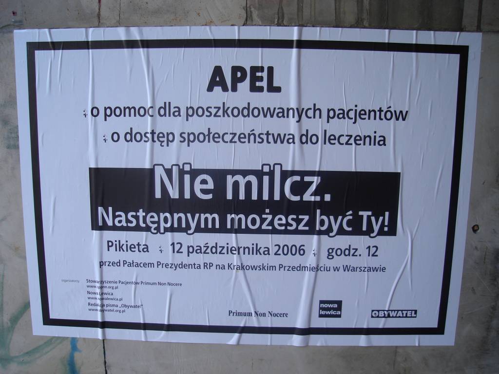 Organizatorzy, czyli Stowarzyszenie Pacjentów Primum Non Nocere, Nowa Lewica, oraz Redakcja pisma "Obywatel", wybierają się przed Pałac Prezydencki (dawniej: Pałac Koniecpolskich, Radziwiłłów, Lubomirskich, Namiestnikowski) na Krakowskie Przedmieście, by apelować o... no właśnie, o co?