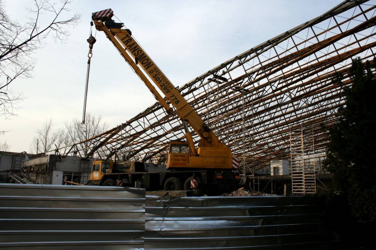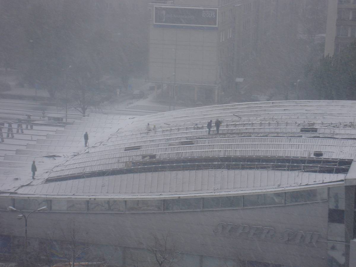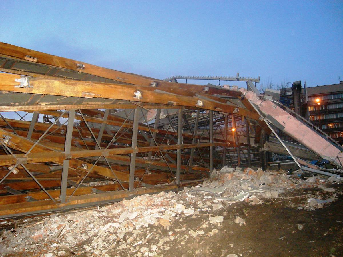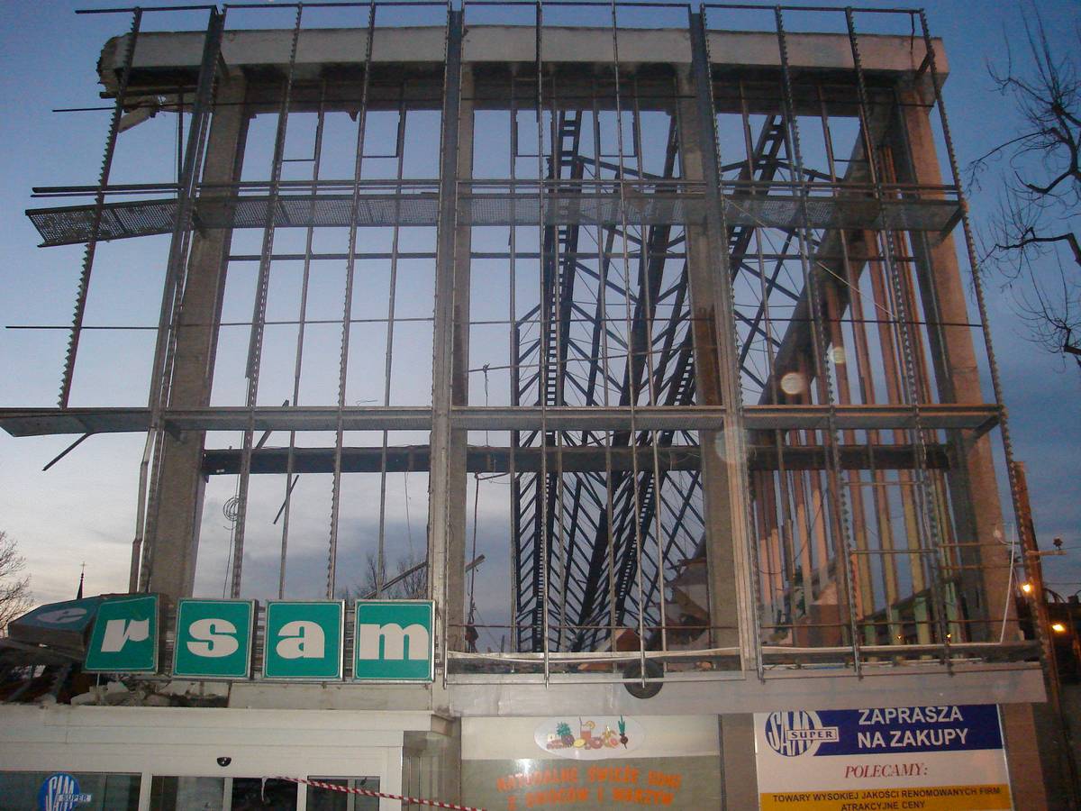 Po 12 dniach dach Supersamu był już tylko nagą metalową konstrukcją .