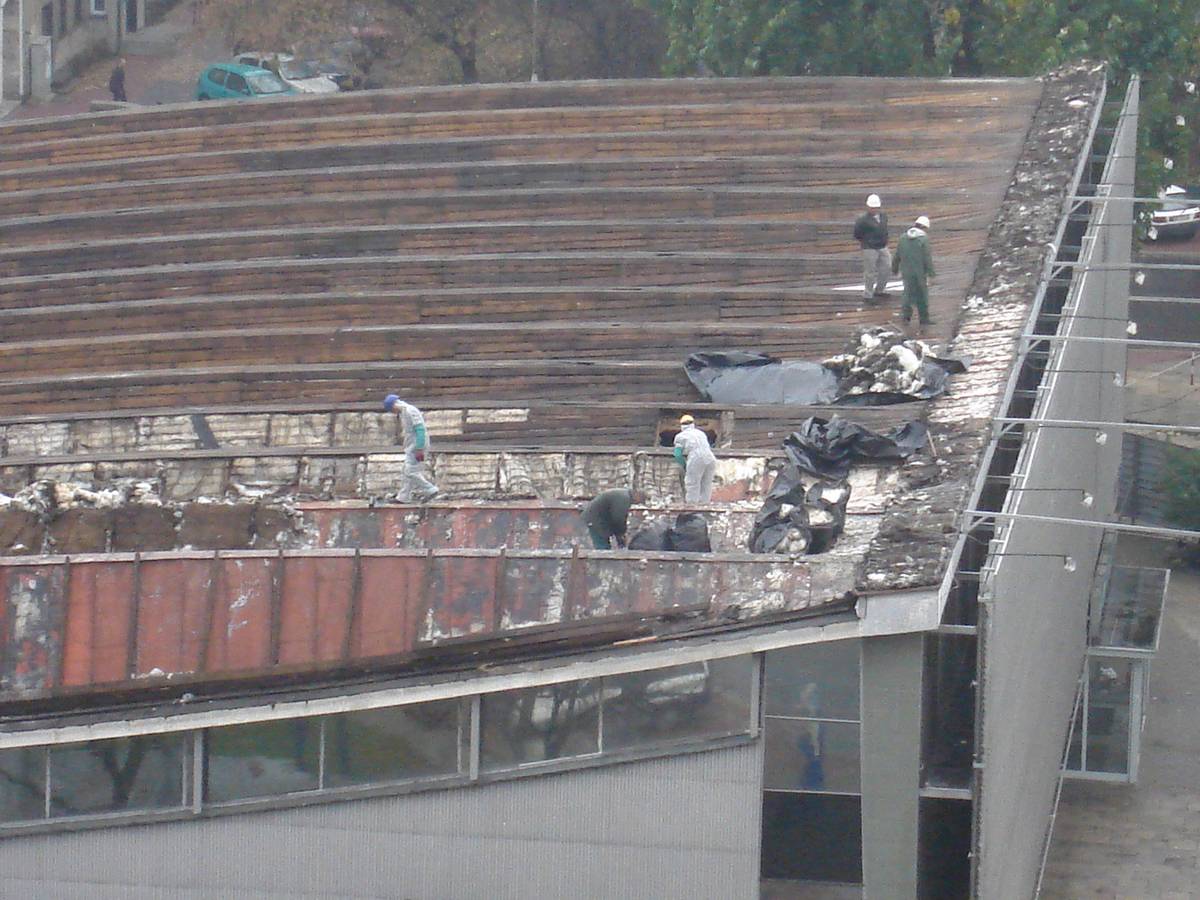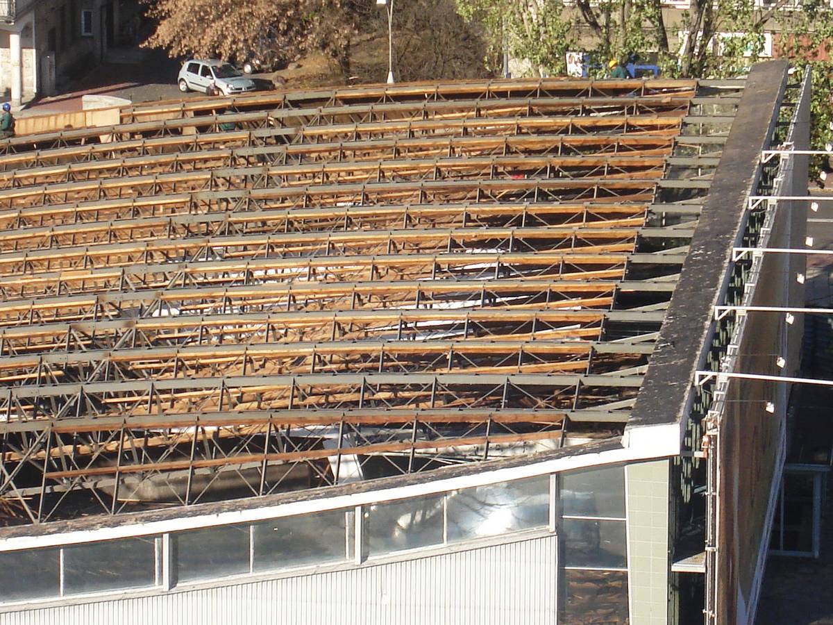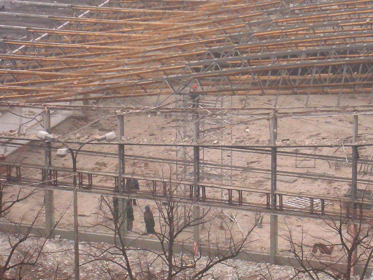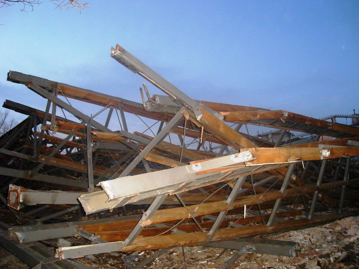 Po 12 dniach dach Supersamu był już tylko nagą metalową konstrukcją .