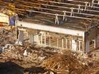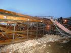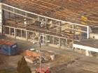 Teren ogrodzono i rozpoczęto rozbiórkę poszycia dachu nad częścią sklepową.