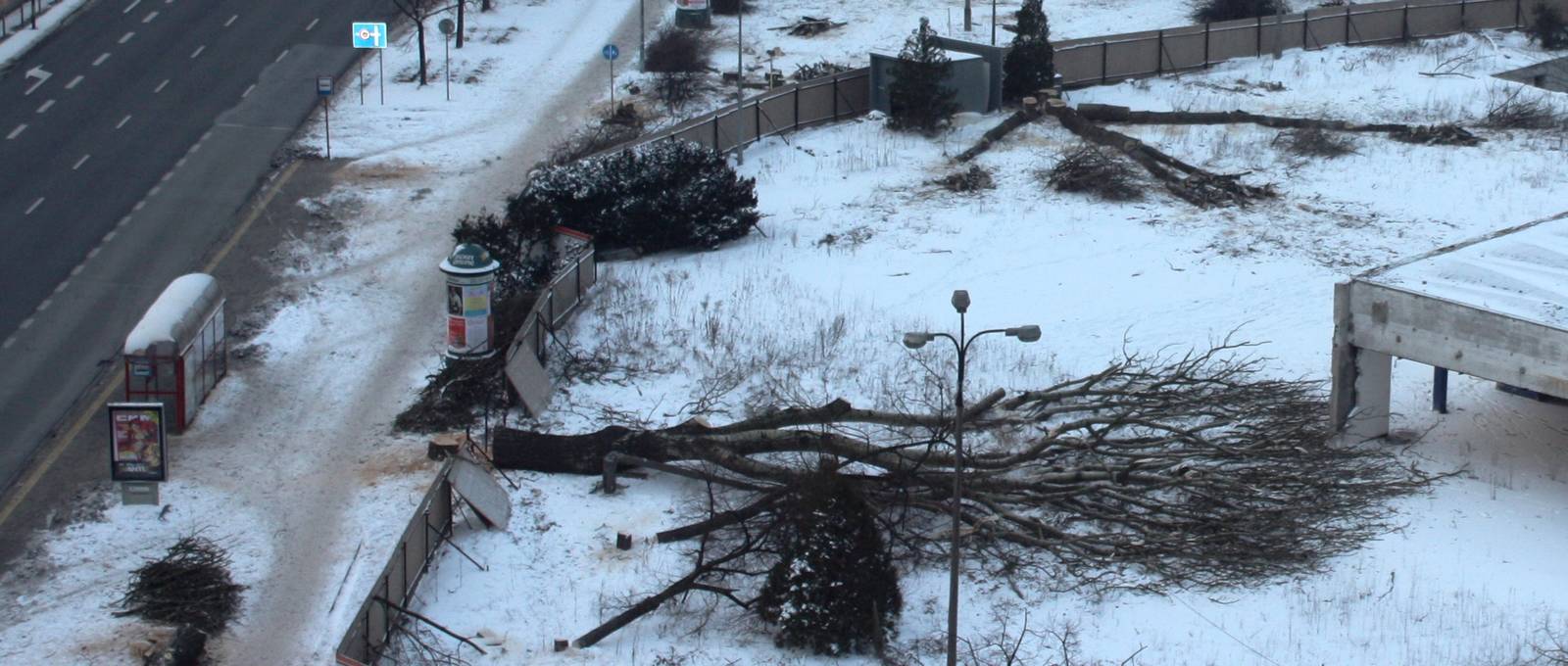 W sobotę rano (19 grudnia 2009) mieszkańców okolic nieistniejącego już Supersamu obudził jazgot pił wycinających drzewa wokół jego grobowca.