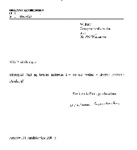 W załączeniu przesyłam list od Wisławy Szymborskiej, która wyraziła swoją opinię o wierszach Grażyny Szałkowskiej. Ukłony serdeczne. Michał Michalski
