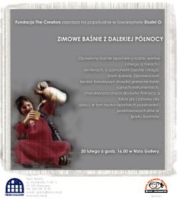 Grupa Studnia O. i Fundacja The Creators zapraszają dzieci małe i duże na Zimowe Baśnie z Dalekiej Północy w niedzielę 20 lutego o godz. 16.00 do Nizio Gallery przy ul Inżynierskiej 3. Wstęp wolny!