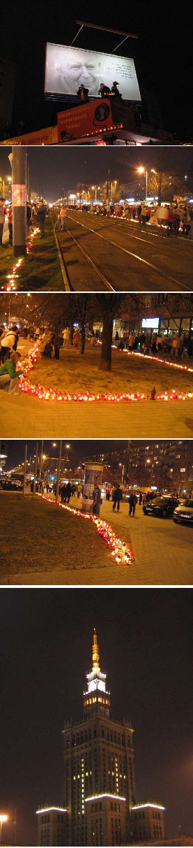 Magią Internetu przywołani, Warszawiacy pojawili się wieczorem, 7.04.2005 roku, na całej długości Alei Jana Pawła II.