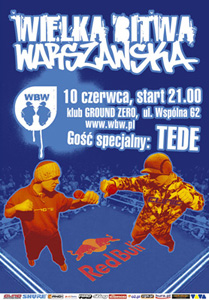 Pamiętacie film 8. mila, którego bohaterowie przesiadują w klubach hip-hopowych, gdzie walczą o prym i szacunek wśród rówieśników staczając pojedynki na rymy? Jeżeli chcecie poczuć podobny klimat, zajrzyjcie dziś o godzinie 21.00 do klubu GROUND ZERO, gdzie odbędzie sie finał Wielkiej Bitwy Warszawskiej. Wystąpią finaliści lokalnych edycji konkursu: