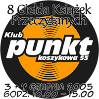 8 Giełda Książek Przeczytanych: 3 i 4 grudnia 2005 w Warszawie na ul. Koszykowej 55 w Klubie „Punkt” w godzinach 10.00-15.00"