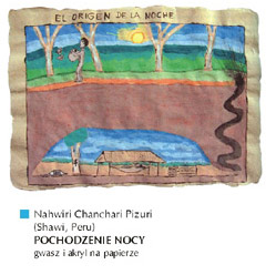 Tę ukrytą rzeczywistość zmieniających się form i komunikujących się bytów, w której zwierzęta „pochodzą" od ludzi, a nie na odwrót, przedstawiają obrazy indiańskich artystów z grup Asháninka, Shawi, Uitoto, Shipibo, Awajún, Wampis, Tikuna i Matsés.